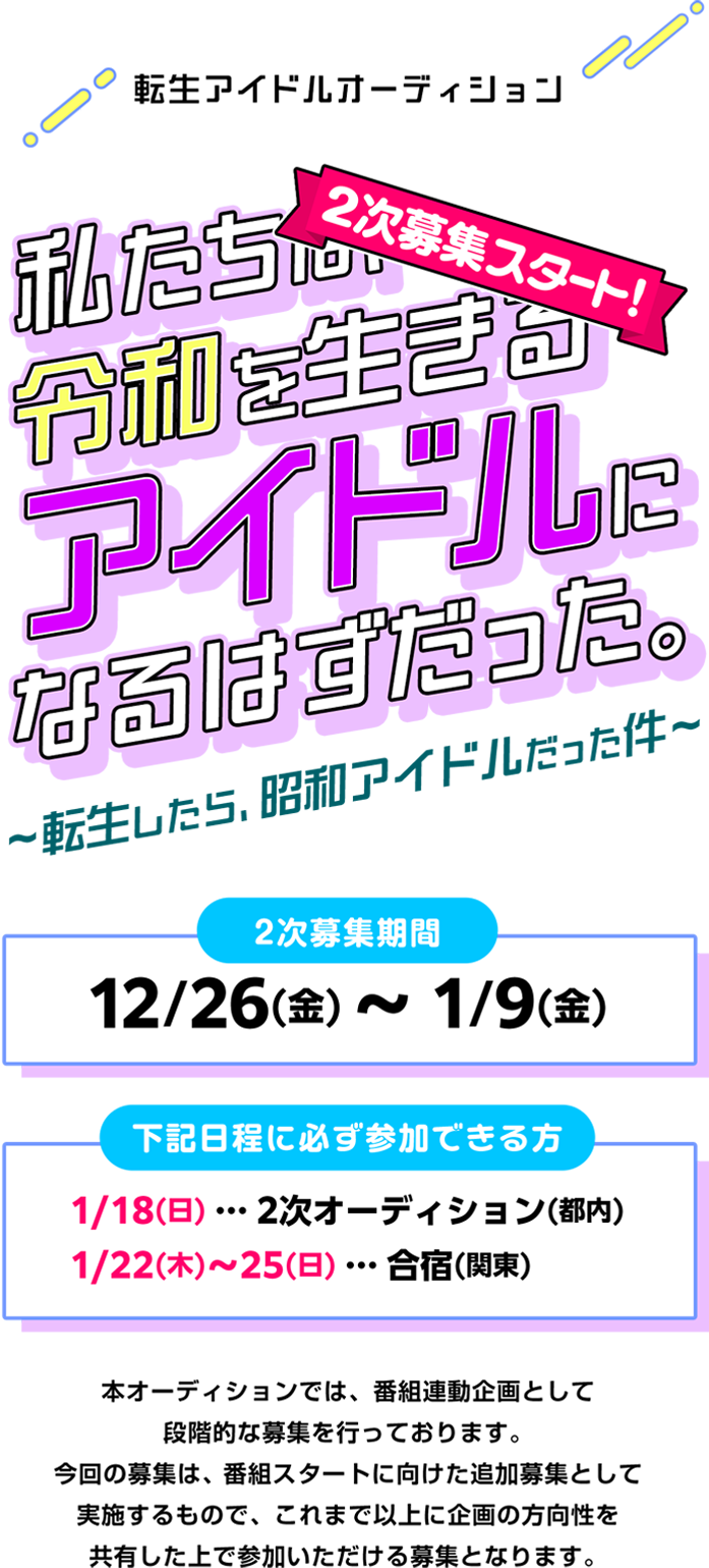 合格者は昭和アイドルカルチャーをモチーフにした新ユニットとしてデビュー。